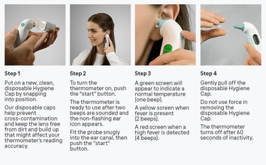 Termometeret har et kompakt, håndholdt design, der er nemt at holde og bruge. Dets vidvinkel-probe hjælper med at sikre præcise øremålinger, samtidig med at det forbliver skånsomt og behageligt.