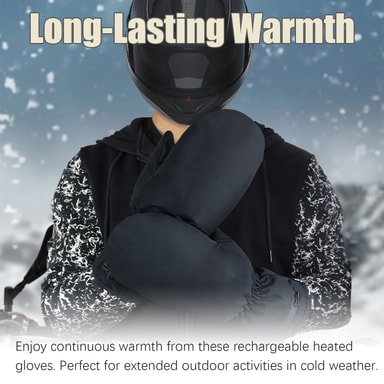 Langvarig varme: Nyd kontinuerlig varme fra disse genopladelige handsker. Perfekt til længerevarende udendørsaktiviteter i koldt vejr.