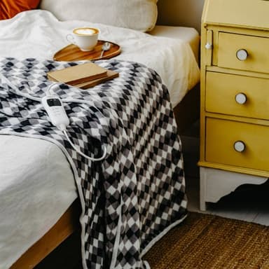 Superblødt elektrisk varmetæppe med timer og 7 varmetilstande - Ternet