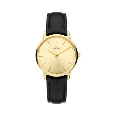 Dette ur fra danish design har en 32 mm. Rustfri stålkasse, der indeholder et kvarts urværk. Uret har en guld skive med mineralsk krystalglas og er vandtæt indtil 30 meter.