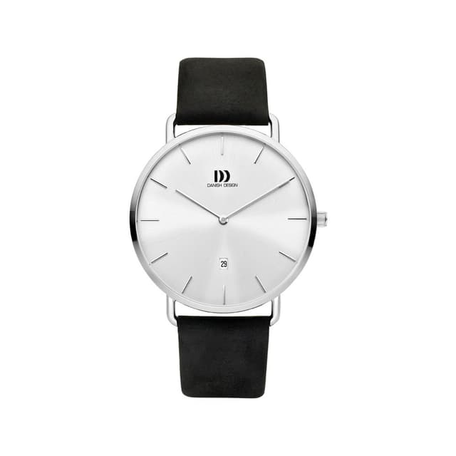 Perfekt til ethvert outfit. Dette ur fra danish design har en kasse i rustfrit stål med hvid skive, datodisplay, mineral krystal glas og en sort læderrem.