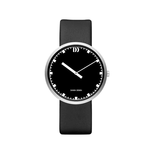 Ved at lave visere og tidsmarkører forskellige i størrelse, har danish design givet dette klassiske ur et helt nyt look. Uret har en kasse i rustfrit stål med en sort skive, mineral krystal glas og en sort læderrem.