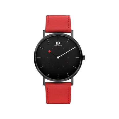 Dette ur er hvad danish design handler om: klassisk og simpelt design med et twist. Uret har en guldfarvet kasse med sort skive, mineral krystal glas og en rød læderrem.