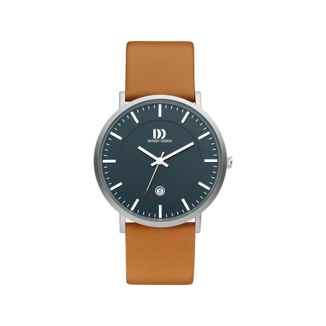 Giv dit look en lille smule detalje med dette ur fra danish design. Uret er lavet med en kasse i rustfrit stål med blå skive, mineral krystal glas og en brun læderrem.