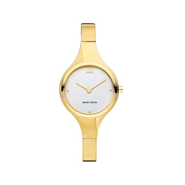 Dette smukke ur fra danish design er perfekt til enhver lejlighed. Uret har en guldfarvet kasse i rustfrit stål med hvid skive, mineral krystal glas og et armbånd i rustfrit stål.
