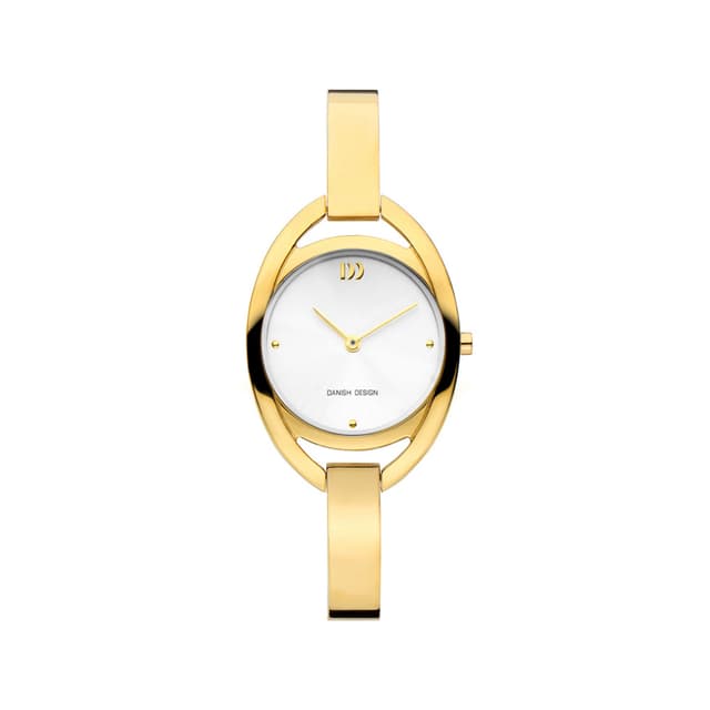 Danish design formår at skabe nye fortolkninger gang på gang, når det kommer til moden indenfor ure. Dette ur har en guldfarvet kasse i rustfrit stål med hvid skive, mineral krystal glas og et armbånd i rustfrit stål.