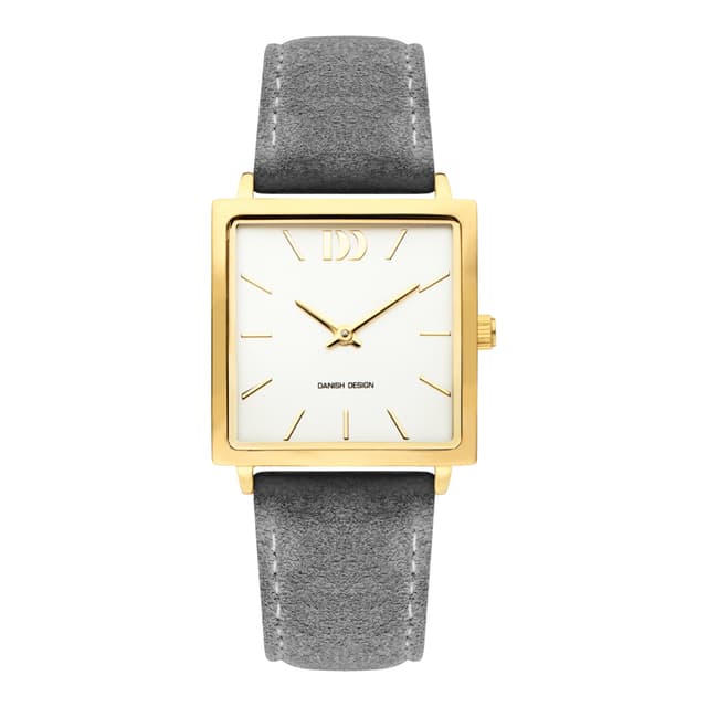 Dette smukke og elegante ur fra danish design er designet til at passe til ethvert outfit. Uret har en guldfarvet kasse i rustfrit stål med hvid urskive, mineralsk krystalglas og en grå læderrem. Kasse størrelse: 26,5mm. Vandafvisende: 3 atm.