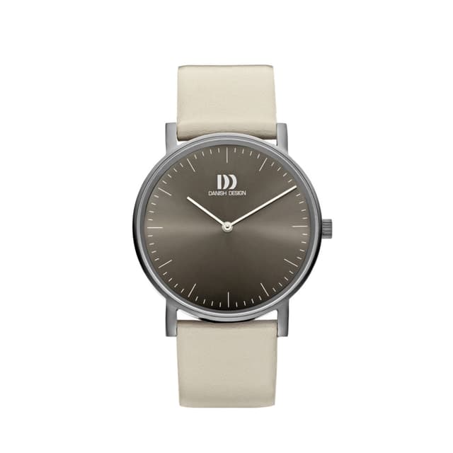 Intet mindre end et smukt designet ur fra danish design. Dette ur har en kasse i rustfrit stål med brun skive, mineral krystal glas og en beige rem i læder.