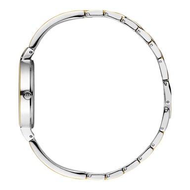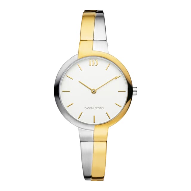Dette lille og smukke ur fra danish design er perfekt til ethvert outfit og enhver lejlighed. Uret har en titanium kasse med hvid urskive, mineralsk krystalglas og et titanium armbånd med guldfarvet detaljer. Kasse størrelse: 32mm. Vandafvisende: 3 atm.