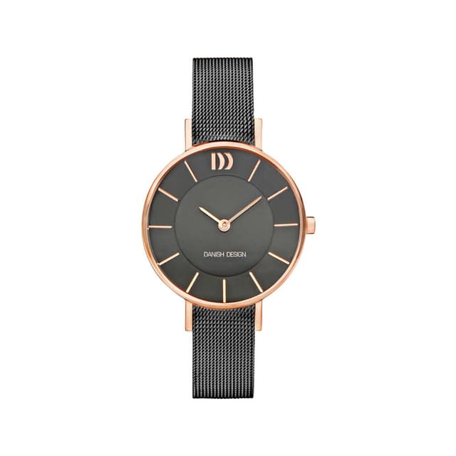 Med dette stilfulde og simple ur fra danish design kan du gøre ethvert outfit komplet. Uret har en rosaguldfarvet kasse i rustfrit stål med sort skive, mineral krystal glas og et mesh armbån di rustfrit stål.