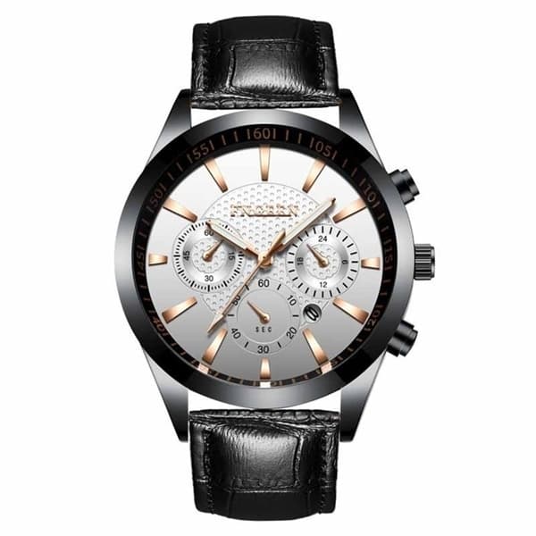 FNGEEN Armbåndsur Læderurrem Hvid/Sort
