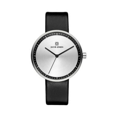 Den prisbelønnede strata ur kollektion er designet til at imødekomme fleksibiliteten i det daglige liv. Den let udskiftelige læderrem er tydeligt synlig på siden af sagen, der giver uret et særprægende æstetisk udtryk. Ved at kombinere klassisk design, funktionalitet og materialer af høj kvalitet er strata-uret et ikonisk urværk skabt af jacob jensen design studio.