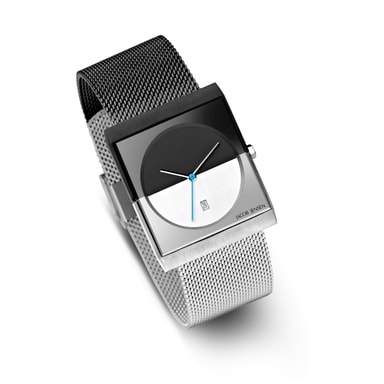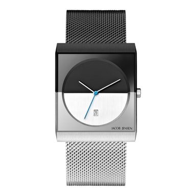 Opdateret koncept af det oprindelige classic fra 1985, som var den første produkt, der blev markedsført under varemærket jacob jensen, med et nyt design i rustfrit stål og et mesh armbånd med sort eller guld pvd.