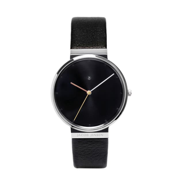 Baseret på den filosofi, der i årtier har skabt designstudioet bag det, det danske jacob jensen design, og gjort det anerkendt og respekteret over hele verden. Alt overflødigt er blevet fjernet, og hvad der er tilbage er de rene linjer, materialet og funktionaliteten understøttet af sublim teknisk kvalitet. Som sin forgænger er urkassen lavet af solid rustfrit stål. Glaset er safir krystal og dermed meget modstandsdygtig mod ridser. Urremmen er ægte læder. Bag den nye skive finder du et ronda kvalitets urværk.
