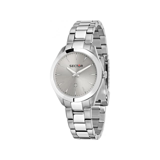 Kasse materiale og finish: rustfrit stål, kasse størrelse: 36x41,2mm, kasse tykkelse: 7,75mm, krystal: mineral krystal, rem materiale: rustfrit stål, rem farve: stål, spænde type: folde spænde, urværk: quartz, vandtæthed: 5 atm, garanti: sector 2 års garanti, emballage: sector originalemballage