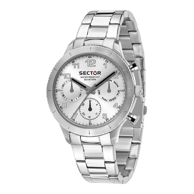Kasse materiale og finish: rustfrit stål, kasse størrelse: 41mm, glas: mineral, rem materiale: rustfrit stål, farve: sølv, urværk: kvarts, garanti: sektor 2 års garanti, emballage: sektor originalemballage