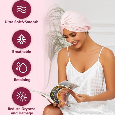 Alsidig brug: Denne satinforede bonnet er perfekt til forskellige lejligheder, såsom søvn, ansigtsvask, påføring af makeup og hudpleje. Den er også velegnet til kvinder med alle hårtyper, især dem med krøllet, kruset eller kruset hår.
