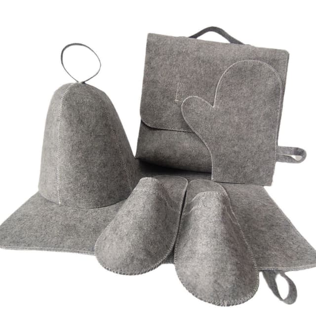 Komfort og beskyttelse: Det bløde og behagelige filtmateriale giver effektiv varmeisolering og beskytter dit hoved, hænder, fødder og krop mod saunaens intense varme. Den tætsiddende pasform sikrer maksimal dækning og komfort under dine saunasessioner.