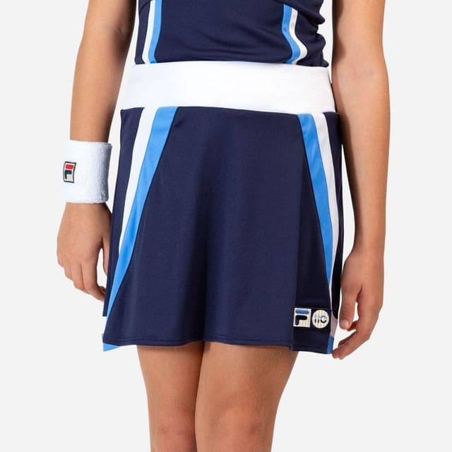 Stilfuld nederdel fra Fila i mørkeblå med hvide og lyseblå detaljer.Læs mere om produktet
