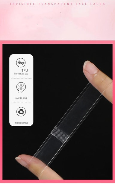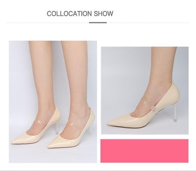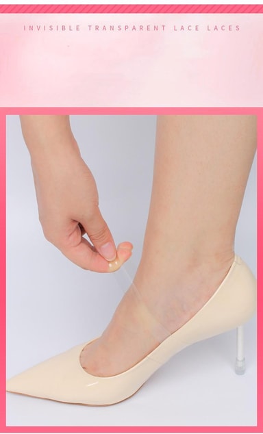 Remmen trækkes rundt om sko og fod og holder skoene på plads. Ingen risiko for at glide ud af højhælede pumps - som et usynligt spænde holder den gennemsigtige rem skoen på plads. Remmen er lavet af blød TPU af høj kvalitet, et silikonelignende materiale, der er fleksibelt og holdbart.