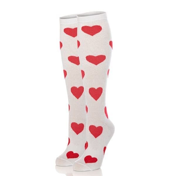 Farve: Hvide med røde hjerter Størrelse: 41-45 Fremstillet af 60% Bomuld, 21% Polyester, 19% Elastan