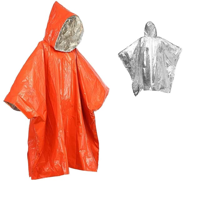 Regnfrakke lavet af rivefast aluminiumsfilm, vandtæt og vindtæt, holder dig varm i ekstreme klimaer. Kan bæres på begge sider, reflekterende overflade forbedrer synlighed.