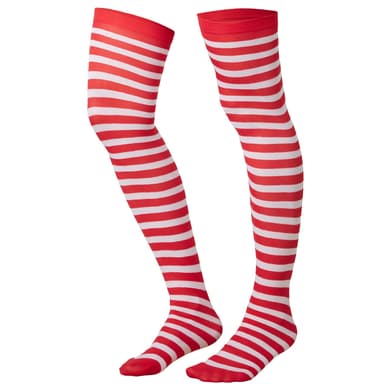 Der er ingen tvivl - de rødt-hvidt stribede overknee-strømper er et blikfang! Det tætsiddende stof iscenesætter benene perfekt. Det kontrastrige ringmønster passer perfekt til mange udklædninger og anledninger. Ud over det ekstravagante look er de uigennemsigtige og selvsiddende damestrømper meget behagelige at have på, har en perfekt pasform og beskytter godt mod kulden, materiale: 95% polyester, 5% elastan.