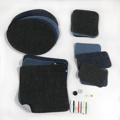 Reparationsplastre lavet af slidstærkt denimstof i forskellige blå farver. Lapper, som du kan stryge på det revnede område, er en stilfuld, hurtig og nem løsning, hvor du ikke behøver at sy. Stoflappen kan klippes til den ønskede form. Indeholder 20 stykker stof i 4 størrelser og 5 forskellige farver.