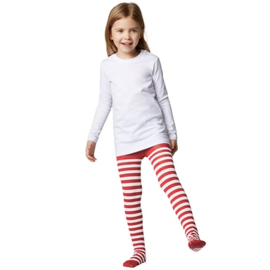 Når først de rødt-hvidt stribede strømpebukser til børn kommer på, får udklædningen det sidste pift. Klovne, hekse og julenisser elsker det uigennemsigtige stykke tøj med dets kontrastrige ring-look, som beskytter benene mod kulden. Det elastiske materiale er bekvemt, og den elastiske linning ligger behageligt på huden, materiale: 95% polyester, 5 % elastan.