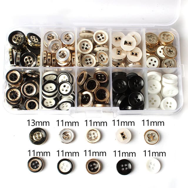Levende variation: Hver boks består af 100 knapper, 11 mm i diameter, som tilbyder en bred vifte af flerfarvede muligheder til dine kreative projekter. Nyd friheden til at vælge mellem et rigt udvalg af nuancer, der komplementerer din unikke stil.