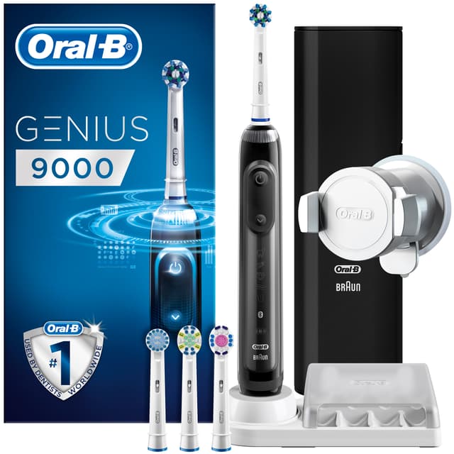 Oral-B Genius 9000S elektrisk tandbørste GENIUS9000B giver dig følelsen af, ​​at dine tænder er renset af en professionel. Tandbørsten kommer med en bred vifte af nyttigt tilbehør, Bluetooth og 6 forskellige børstetilstande.