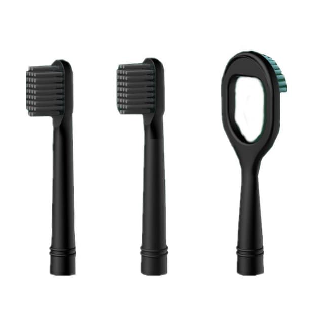 Flere typer rengøringshoveder: Tandbørsterne er let tilgængelige selv mellem tænderne og børster forsigtigt, men effektivt. Tungeskraberen renser tungen fra belægninger og forhindrer fremkomsten af bakterier.
