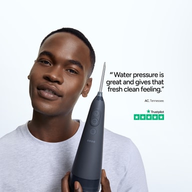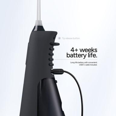 Den 360-graders roterende dyse gør det nemt at justere vandstrålens vinkel, hvilket sikrer grundig rengøring af svært tilgængelige områder mellem tænderne og omkring bøjler, implantater eller andet tandarbejde.