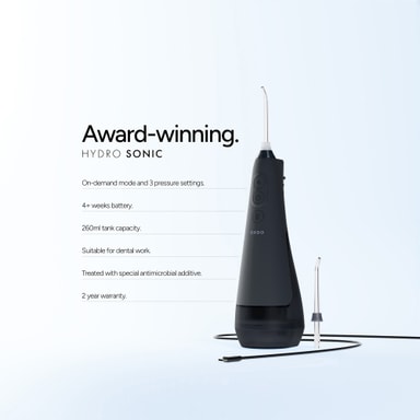 Denne Ordo Hydro Sonic+ vandbaserede tandrenser 38673 fjerner effektivt plak og madrester mellem tænder og tandkød. Med en 360° roterende dyse og hydro-kinetisk teknologi giver den en skånsom, men grundig rengøring, hvilket gør den ideel til voksne med bøjle, tandimplantater eller andet tandarbejde.