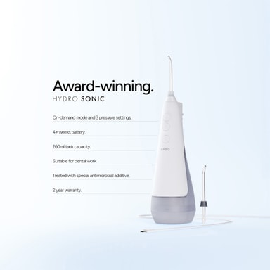 Hydro-kinetisk teknologi bruger en kraftig vandstråle til at fjerne plak og madrester mellem tænder og tandkød. Den sikrer en dyb rengøring, selv på svært tilgængelige steder, samtidig med at den er skånsom mod tandkødet.