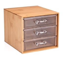 Specifikation - Materiale: Bambus - Skuffer: 3 med gennemsigtig front - Mål: 138 x 123 x 110 mm