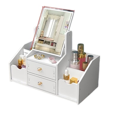 Alsidigt og funktionelt: Mere end blot et spejl, fungerer dette makeupspejl også som en smart opbevaringsenhed. Perfekt til at organisere makeup, hudplejeprodukter, smykker og tilbehør. De rummelige skuffer giver masser af plads, mens spejlet giver en klar og klar refleksion til din daglige skønhedsrutine.