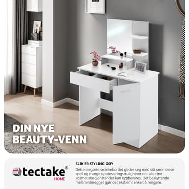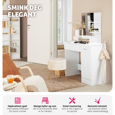 Designet er enkelt og moderne, hvilket betyder, at sminkebordet nemt kan integreres i forskellige indretningsstile.