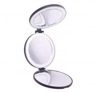 Kompakt tredobbelt rejsespejl med almindeligt spejl på den ene side, spejl med 5x og 10x forstørrelse på de andre. Praktisk spejl, som nemt kan passe i rejsetasken og tages med på weekenture og rejser.