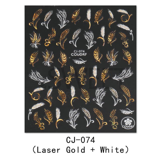 • Efterår Laser Nail Art Stickers 1 ark Guld