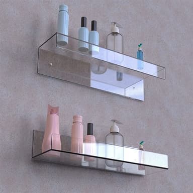 Væghylde i klar plast 38x11x7,6cm 2-pak