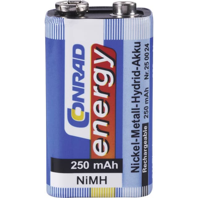 • 9 V-blokbatteri Conrad energy 6LR61 NiMH 8.4 V 250 mAh 1 stk
