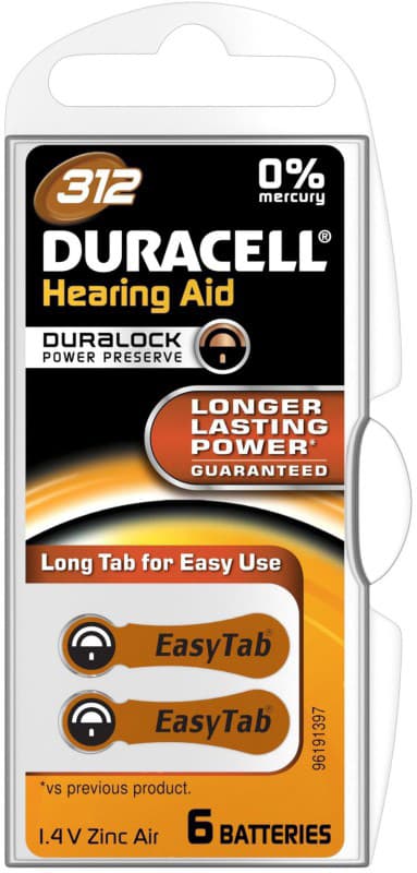 Duracell batteri til høreapparat DA312. 6 batterier i pakken.Læs mere om produktet