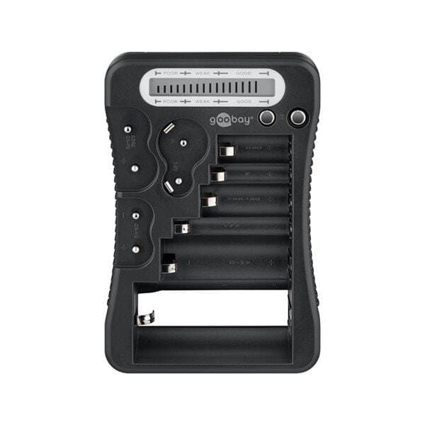 Opdag uventede energireserver med denne Goobay batteritester, der er udstyret med et letlæseligt LCD-display. Denne praktiske tester viser energistatus for en lang række batterier og hjælper dig med hurtigt at afgøre, om det er batteriet eller enheden, der er problemet. Det tydelige display viser opladningsniveauet fra ""dårligt"" til ""godt"", hvilket gør det nemt at afgøre, om batteriet skal udskiftes.