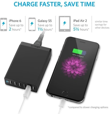 Anker PowerPort 6 bruger PowerIQ-teknologi for at sikre den bedst mulige opladning af enhver enhed. Den smart-opladende chip identificerer den forbundene enhed og vælger den optimale opladningsstyrke.