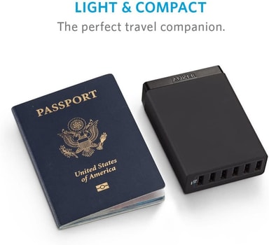 De 6 porte fra PowerPort 6 giver 60W i styrke, som gør det muligt at oplade flere enheder på en gang.