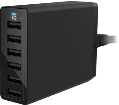 • Anker PowerPort 6 multi-port USB-A oplader (sort)