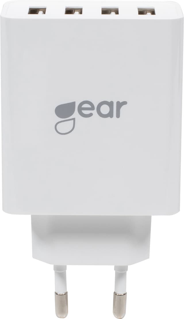 Oplad op til 4 enheder samtidigt takket være denne Gear 220V firedobbelte vægoplader 665096. Den har 25W opladeroutput, 4 USB-A porte og automatisk enhedsmodelgenkendelse for optimeret opladning.