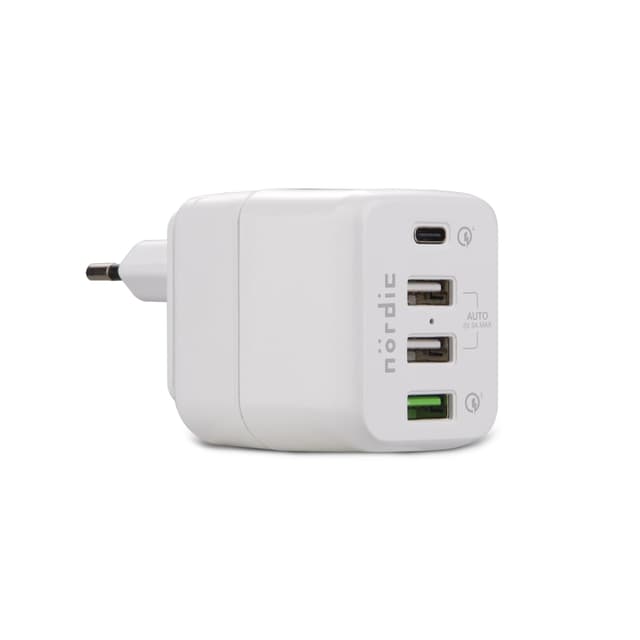 En lille og jævn oplader til bærbare computere, tabletter og smartphones. USB C Port har strømforsyningsfunktionen, der betyder, at du hurtigt kan indlæse bærbare computere op til 45W. Havnen kan også bruges til opladning af tabletter og smartphone. Også 1xUSB en port har Quick Charger QC3.0-funktionen, der involverer hurtig opladning for alle porte. Total output 45W. Produktet har flere sikkerhedsbeskyttelse BLA-kort lukningsbeskyttelse, overspændingsbeskyttelse, overophedningsbeskyttelse og overstrømsbeskyttelse.