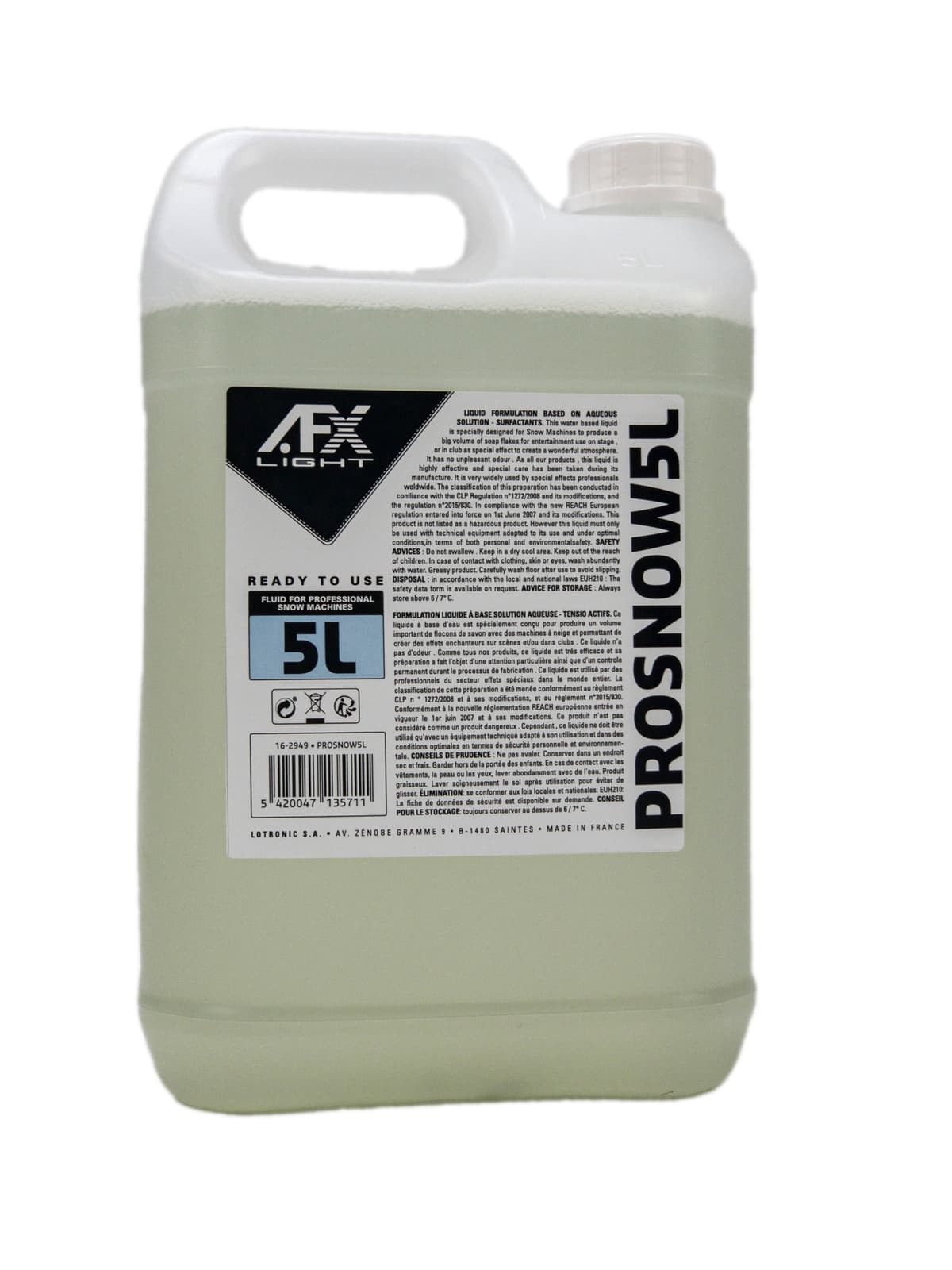 5 Liter snevæske i høj kvalitet.  Producerer sne-lignende skumflager.  Uden lugt.  Kan anvendes i de fleste typer snemaskiner. Læs mere om produktet